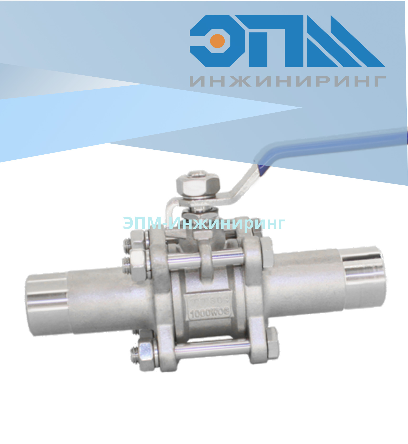 Кран приварной нержавеющий Ду 80 (3ʺ, 88,9 мм), AISI 304 (CF8), полнопроходной, шаровой, трехсоставной (3PC), разборный, с блокировкой ручки, под приварку, удлиненный, без площадки под привод