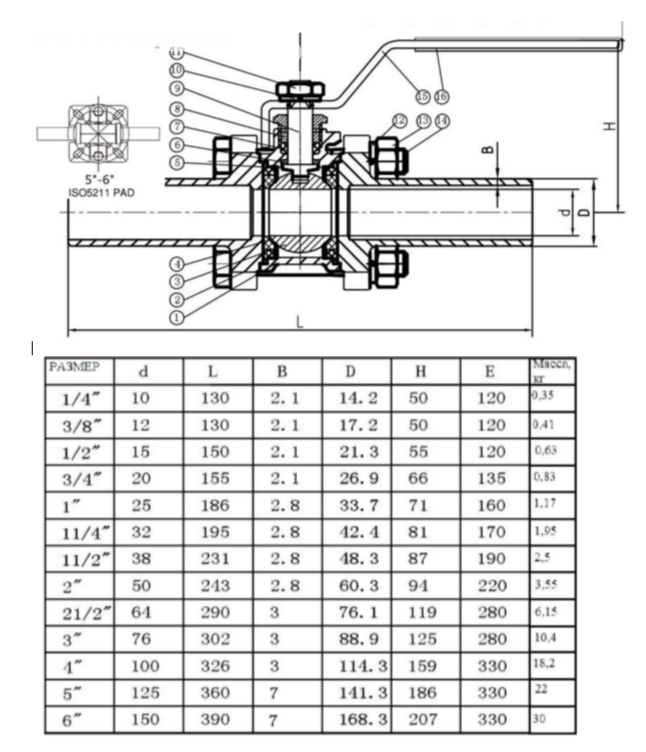 конструкция — под приварку, трехсоставной, разборный, с блокировкой ручки;